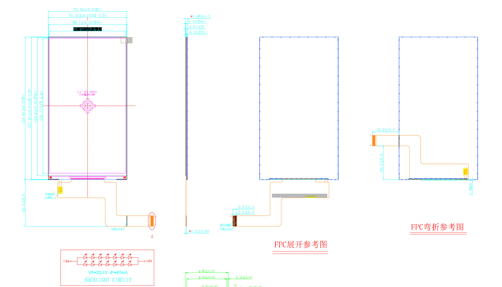 | Mitat ääriviivat | 70,34 (L)*127,91 (K)*1,96 (T) | Taustavalon ledit | 14 kpl |