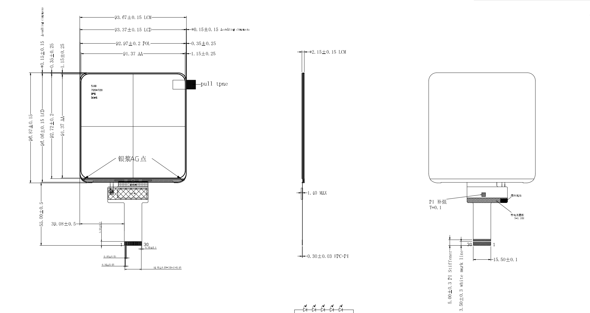 5 tuuman neliömäinen LCD-näyttö, jonka resoluutio on 720*720, tukee 2/3/4 kanavaa MIPI-liitännän kautta, käyttää JD9365-ohjainpiiriä ja sisältää INCELL-teknologian kosketusnäytölle. 5 tuuman neliömäinen näyttömoduuli on suhteellisen ohut, ja koko kosketusnäyttökokoonpanon muodostamiseen tarvitaan vain kansilasi. Tätä tuotetta käytetään laajalti elektronisissa laitteissa. Shenzhen Hongjia Technologyn insinöörit esittelevät sen täällä asiakkaiden ja insinöörien avuksi.