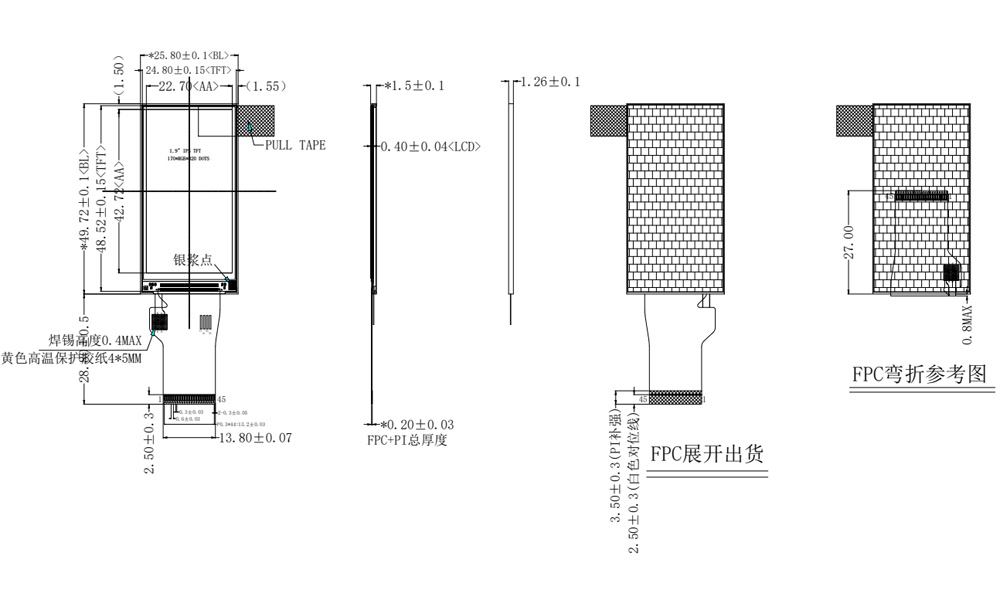 1,9 tuuman palkkinäytön resoluutio on 170 * 320, ja se tarjoaa teräväpiirtotarkkuuden ja herkän näytön, täyden IPS-katselukulman ja tukee SPI/MCU/RGB-liitäntöjä. Se käyttää kypsää ST7789-ohjainpiiriä, joka varmistaa luotettavuuden ja vakauden. 1,9 tuuman tangon muoto sopii täydellisesti monien laitteiden "tietonäyttöliuskan" tarpeisiin, ja se integroituu saumattomasti kapeisiin kehyksiin, sivuihin, rannekkeisiin tai kahvoihin viemättä pääasiallista visuaalista ja käyttötilaa. Sen pieni koko ja äärimmäisen alhainen virrankulutus kuormittavat pääjärjestelmää vain vähän, mikä mahdollistaa keskeisen tiedon aina näkyvissä, mikä tekee siitä akkuystävällisen ratkaisun.